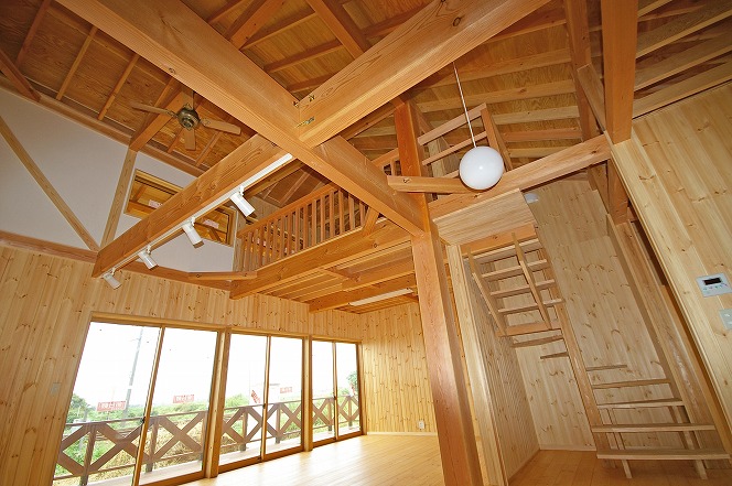 太い大黒柱を用いた高強度構造。