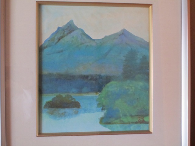 ジンジツ(大正11年)の夏に描かれた作品です。作者「千渓逸人」と雅号が書いてありますが作者不明です。私は此の絵に絵的に魅力を感じている分けでは在りません。ただし此の絵の中の読書をしている人に自分を代入して見ています、渓流に張り出した山房に山からの緑の涼しい風が吹き込み、川の流れる音で頭を浄化され、読書をしたり疲れたら昼寝をしたり心のおもむくままにというところでしょうか。世俗を離れ清貧に生きる、東洋人の理想の姿をあらわしているのでしょう。あこがれるものがあります。処で、私は毎日寝る時に、この絵の様な状景をイメージして此の絵の主人公になる訓練をしております。イメージ訓練というそうです、なかなかいいものです。