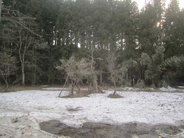さすがにまだ雪があるとは思いませんでした、杉林の日蔭はまだ雪がこのんなにあるのにはビックリです、梅の花が心細げに咲いています。