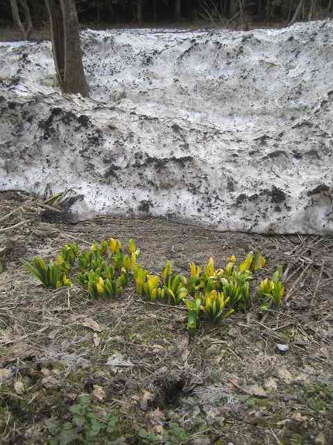 道路脇のの法面では、雪から顔を出したばかりの水仙の葉がか弱げでした。