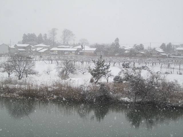 写真の向こう岸は小阿賀野川左岸です、地名は新潟市秋葉区の大蔵といいます。晴れると雪の五頭連邦が輝いてなかなかな良い景色なのです2011年3月7日に此処からのスケッチを掲載しましたが私にとってはお気にいりの場所なのです。
